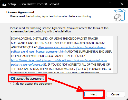 その後「I accept the agreement」をクリックし「Next」をクリックします。